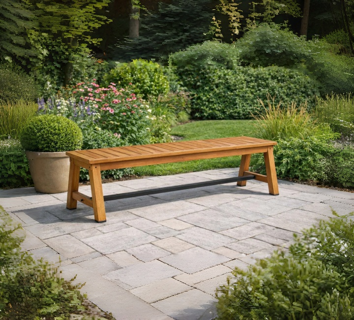 Banc conçu pour les espaces extérieurs tels que jardins, parcs ou terrasses, offrant une assise stable pour les zones de repos en plein air.