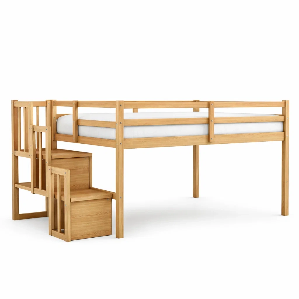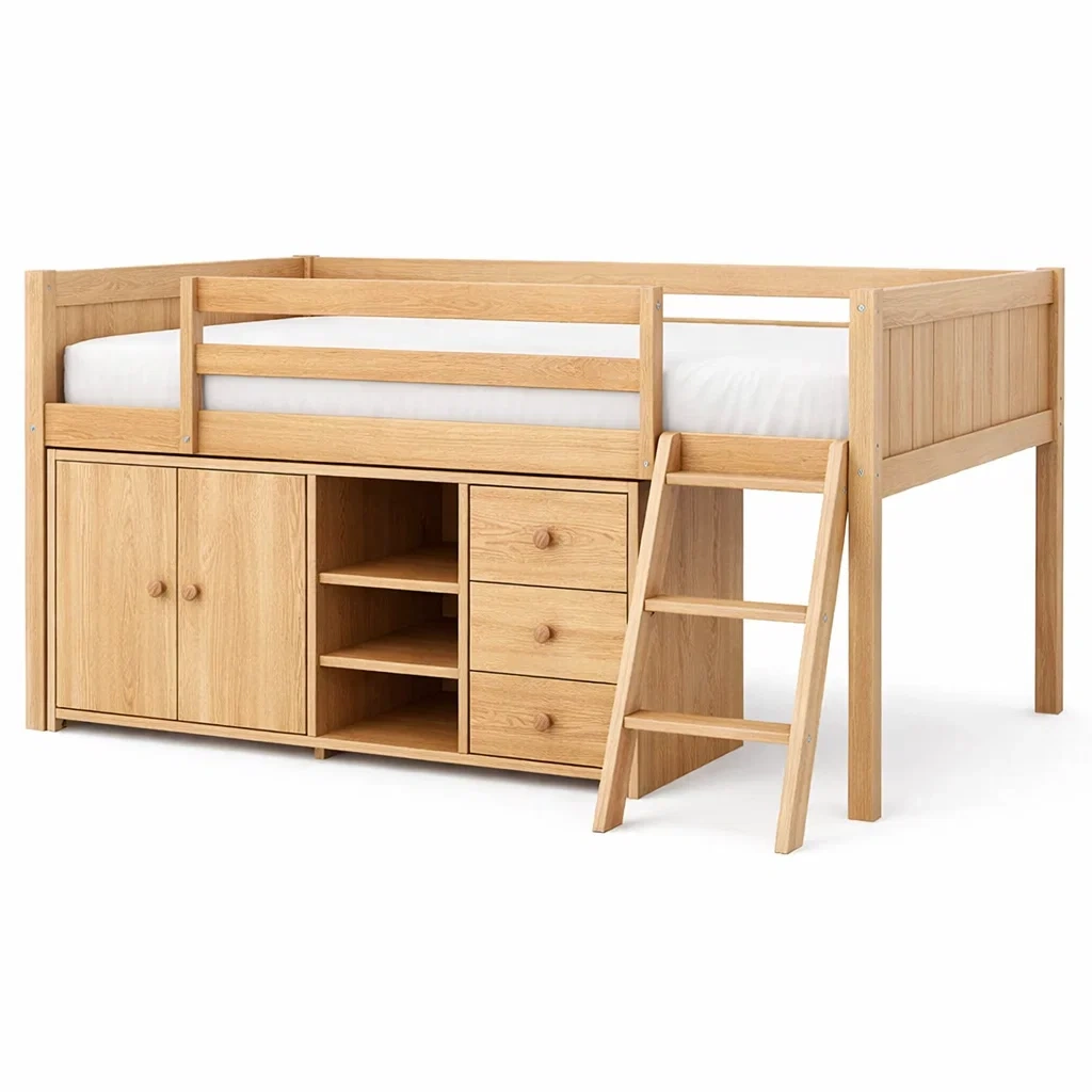 Lit mezzanine en bois avec échelle et rangement intégré