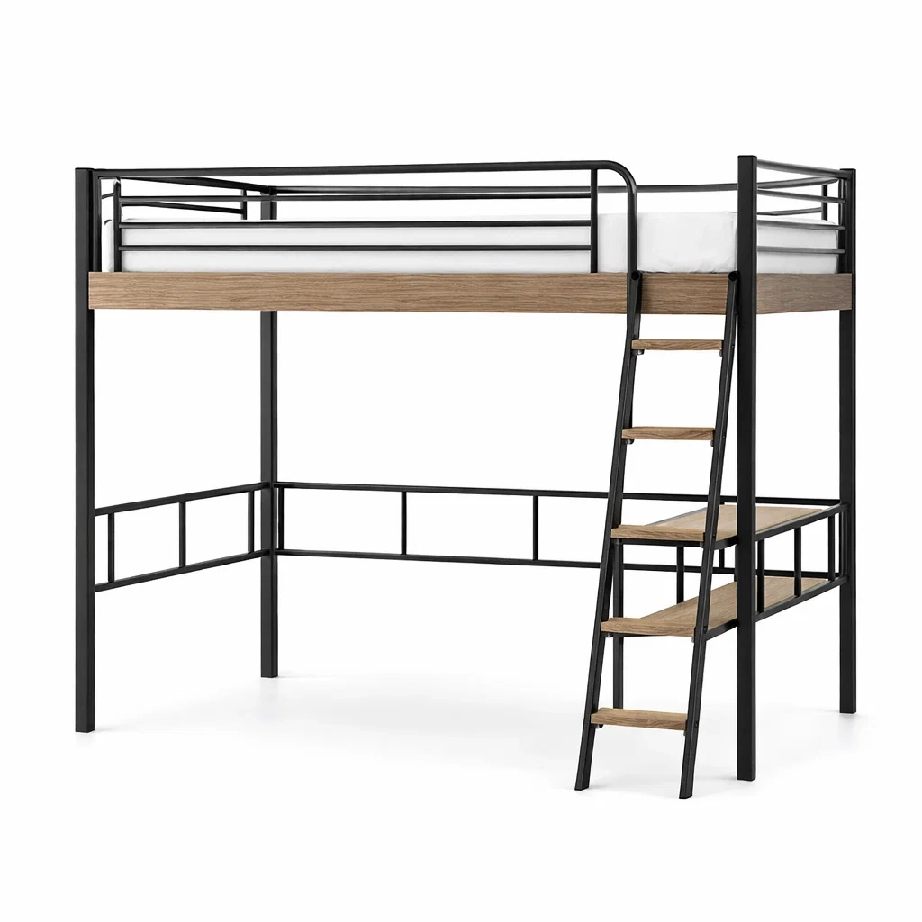 Lit mezzanine en métal noir avec bureau intégré