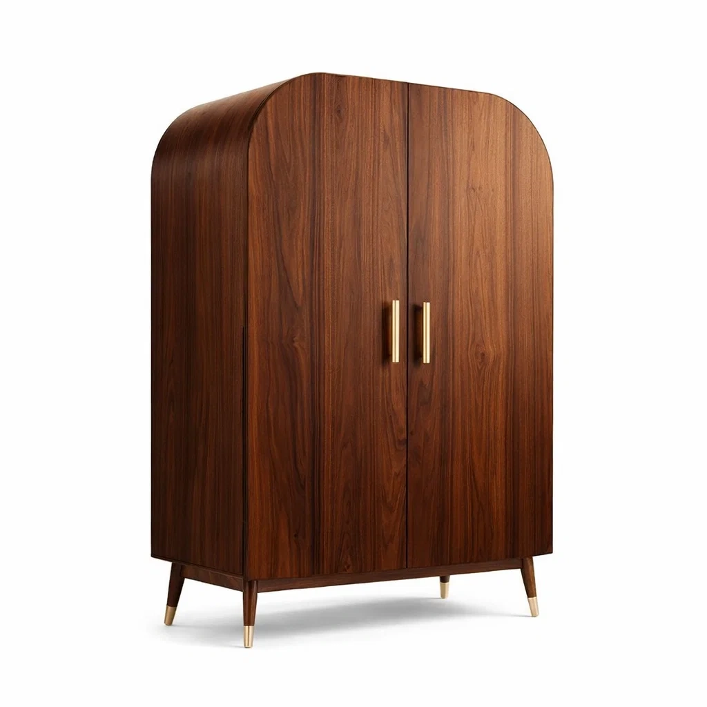 Elle possède deux portes équipées de poignées métalliques. L'intérieur est organisé avec des étagères et une tringle de suspension. Le type d'ouverture est une porte à ouverture classique.