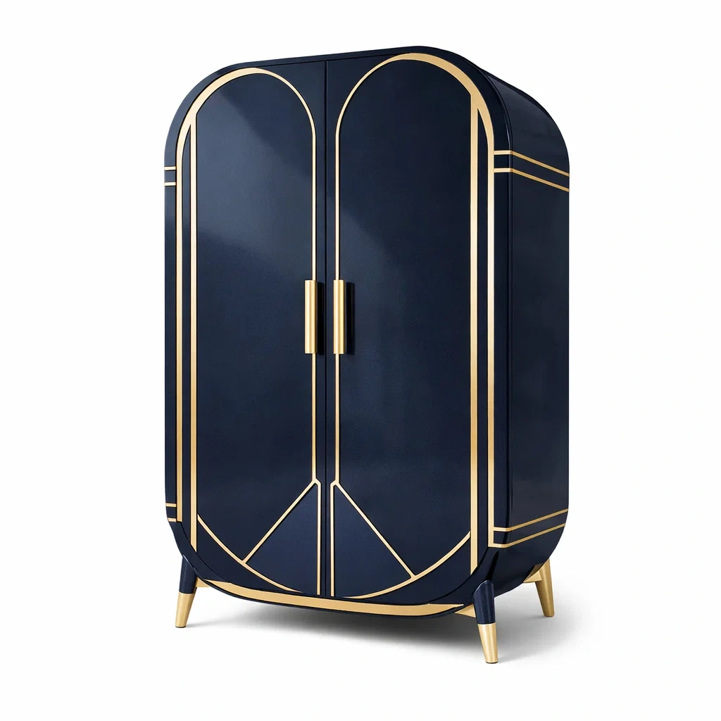 Couleur: Bleu foncé avec détails dorés.