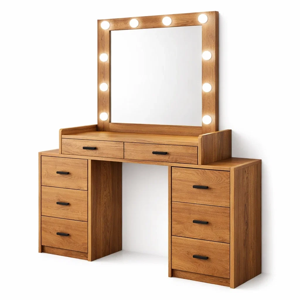 Coiffeuse en bois avec miroir LED et huit tiroirs