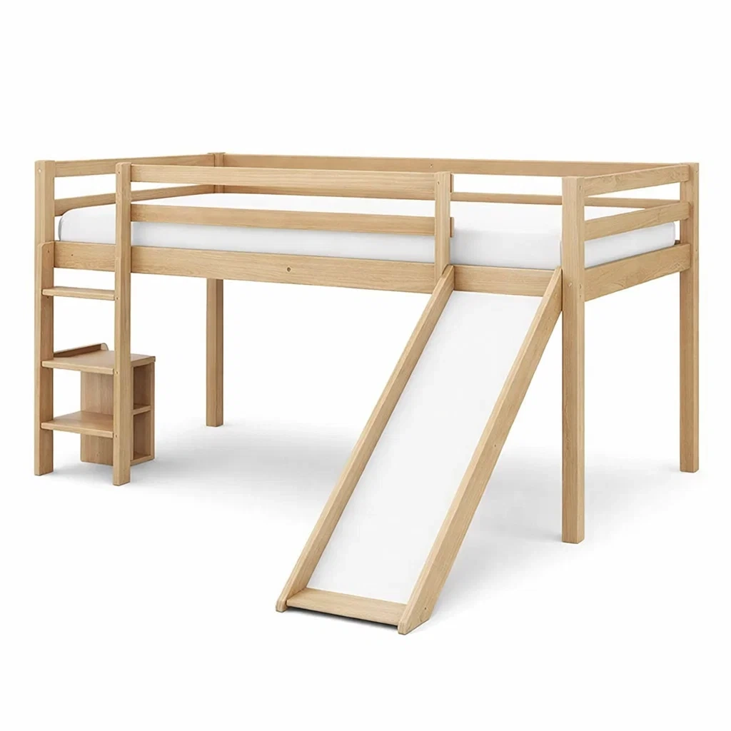 Matériau : Bois de pin massif pour la structure, panneau MDF pour le toboggan.